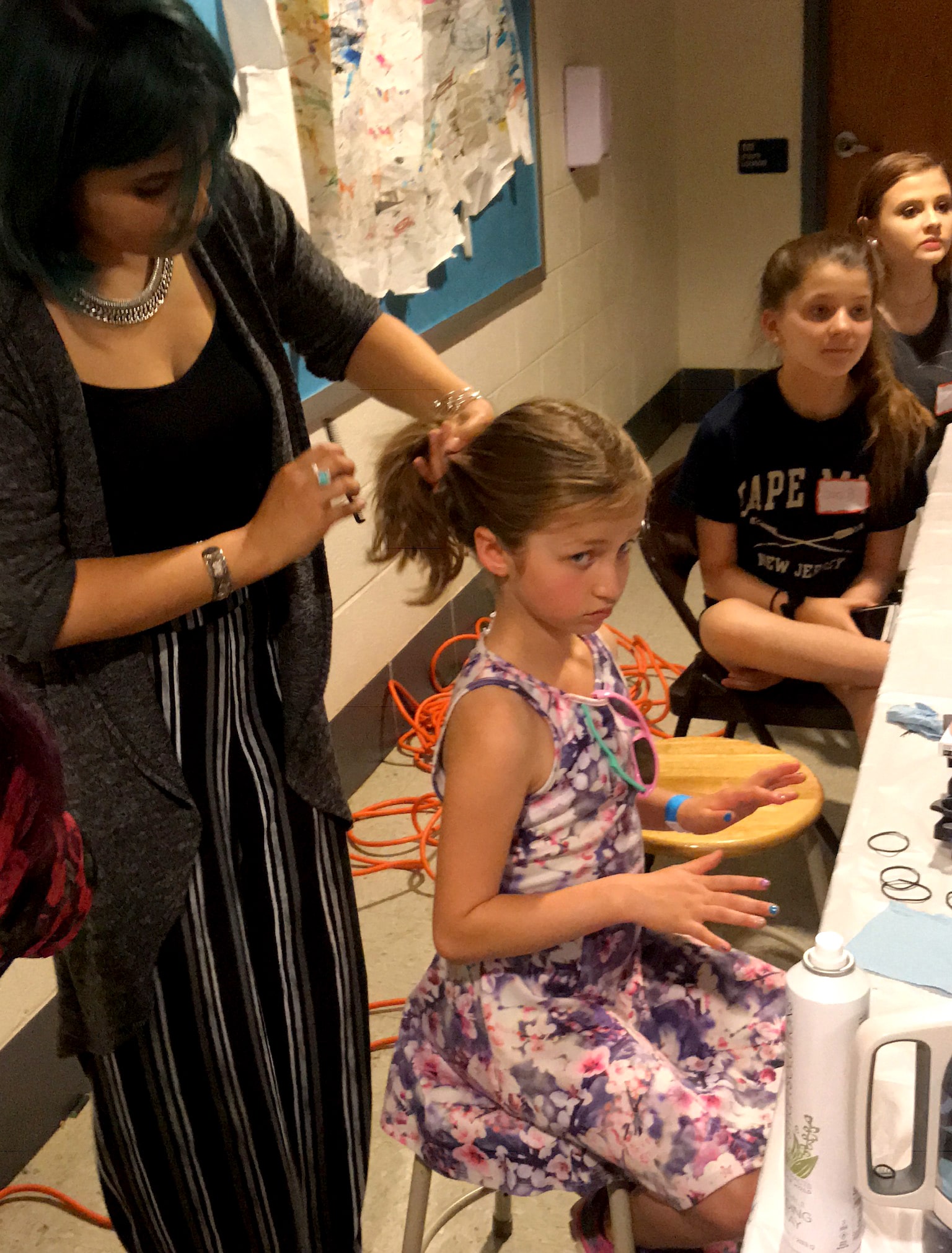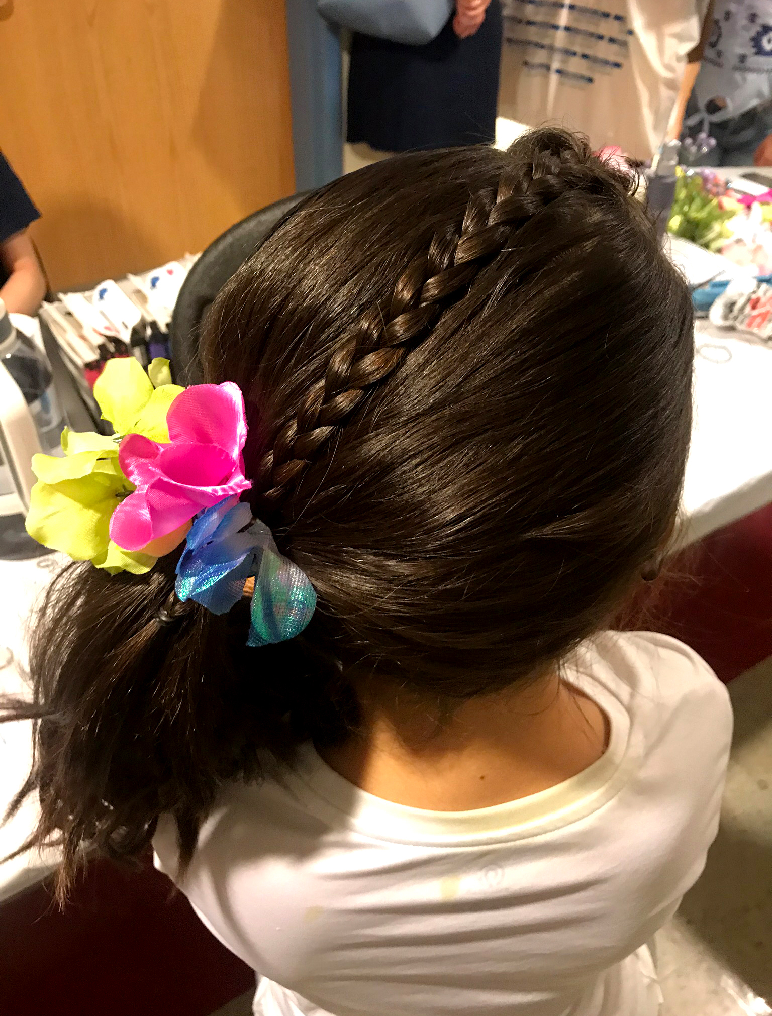 We had a beauty station set up for the girls to express themselves. Some of the girls picked from our temporary colors to show off the colors they love. We also did braids and gave them all blow drys as well. In the end, of each “mini client” we topped off each look with a special accessory to give them each an even unique look.